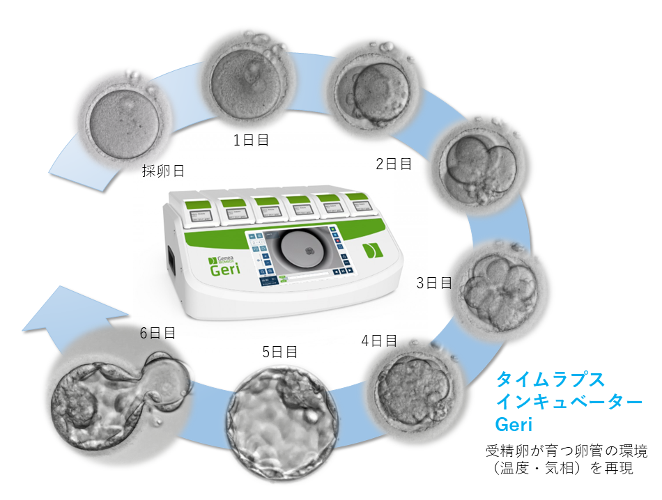 タイムラプスインキュベーターという胚の観察を継続的に行えるインキュベーター(培養庫)を使い、胚を培養しています。受精の有無や胚分割の確認、凍結するための胚盤胞の評価を行います。