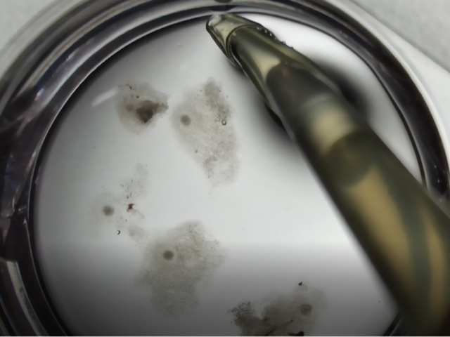採取された卵胞液(卵子が含まれる液体)から卵子を探し、培養液に移して培養します。