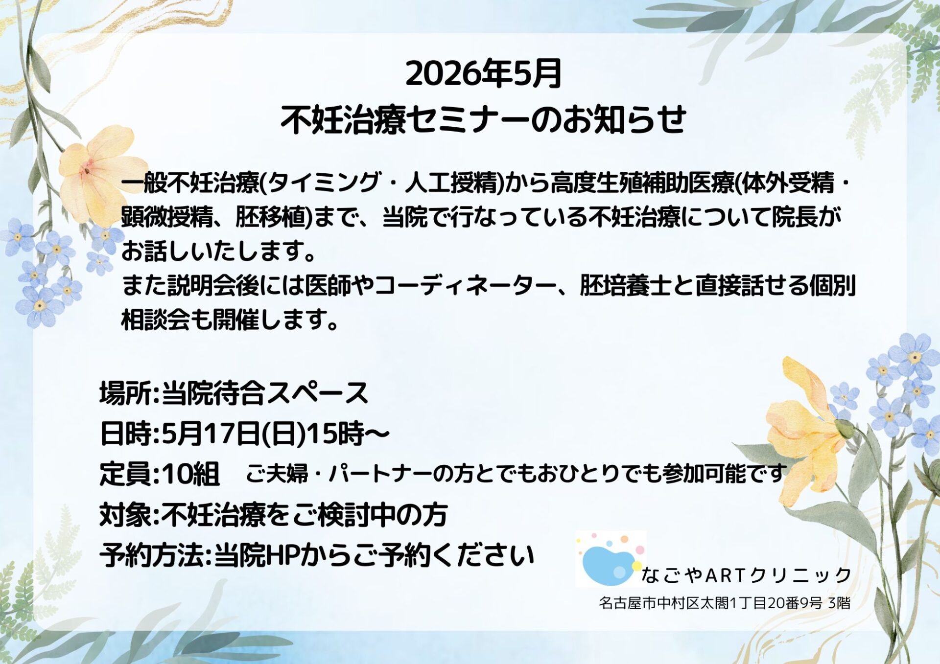 2026年5月不妊治療セミナーのお知らせ
